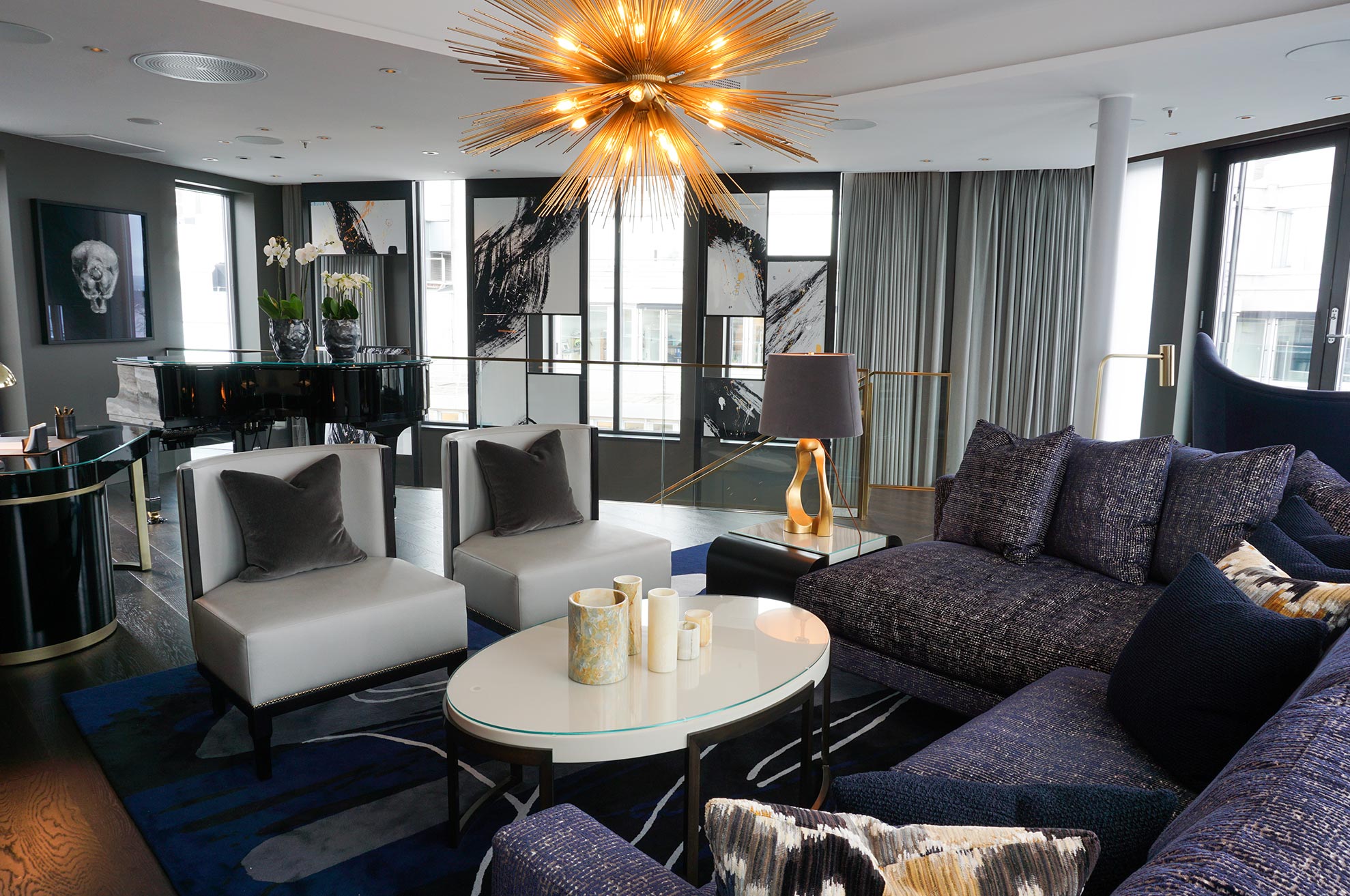 Welcome to the Continental Suite, our largest and most exclusive suite of 200 square meters, where discreet service, delicate design and exclusive art meet in perfect balance. From the very first moment, all your needs are taken care of, allowing you to sit back and enjoy the luxury of this unique two-storey corner suite. The suite features two private terraces, a fully equipped kitchen, private fitness studio, walk-in closet and a spacious spa bathroom with steam bath - perfect for relaxation and well-being.