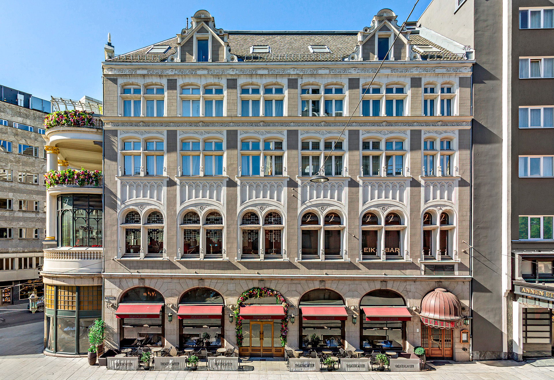 Hotel Continental er bygget i tre faser og danner et triangel mellom Stortingsgaten, Klingenberggaten og Olav Vs gate.