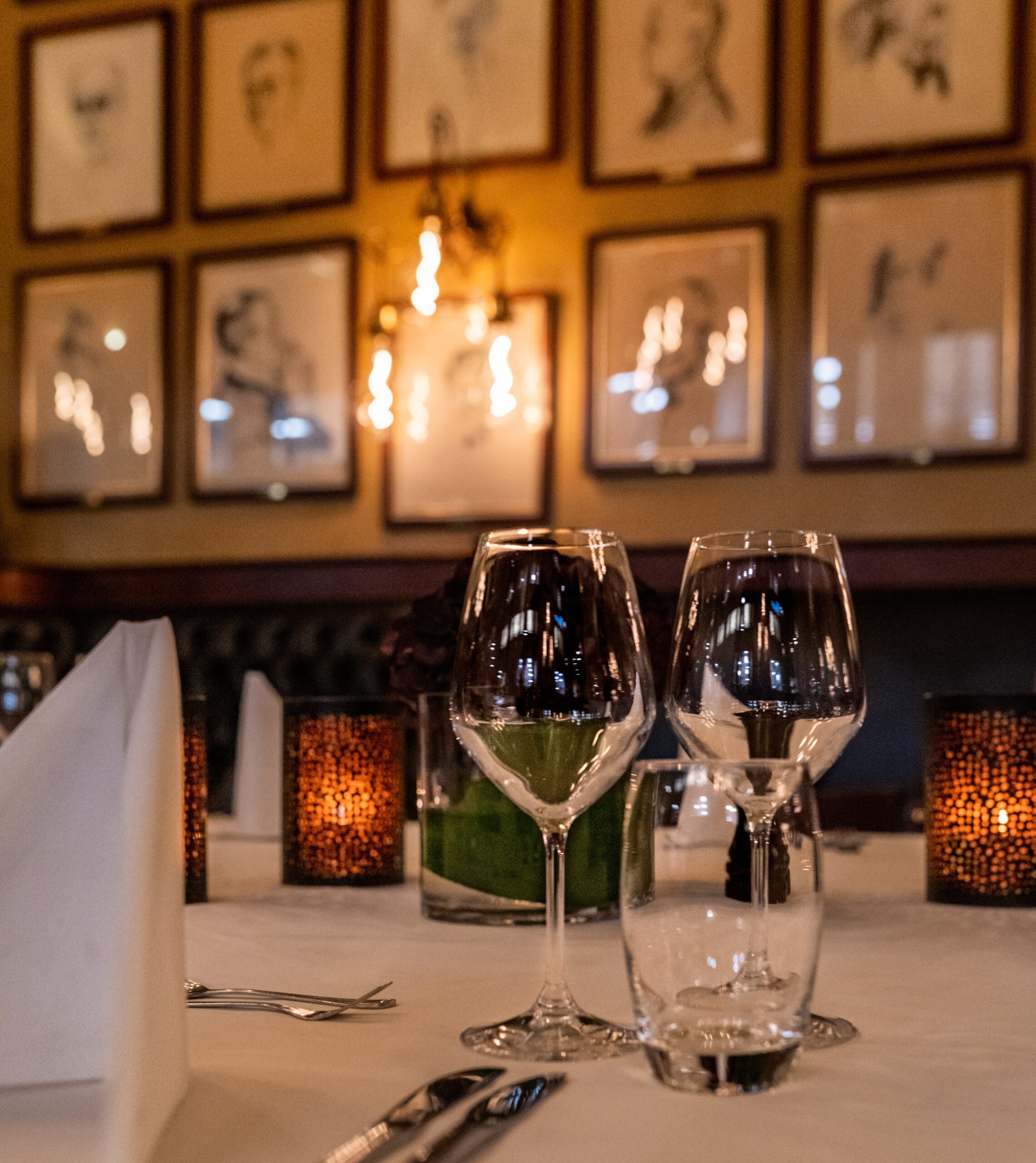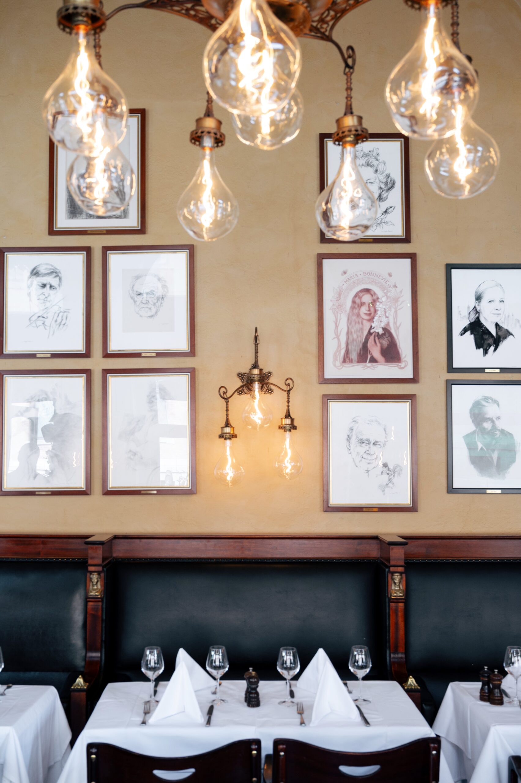 På Theatercaféens sagnomsuste vegger henger i alt 86 portretter av kjente, norske kulturpersonligheter. Felles for dem alle er at de har vært trofaste gjester av huset gjennom årene.