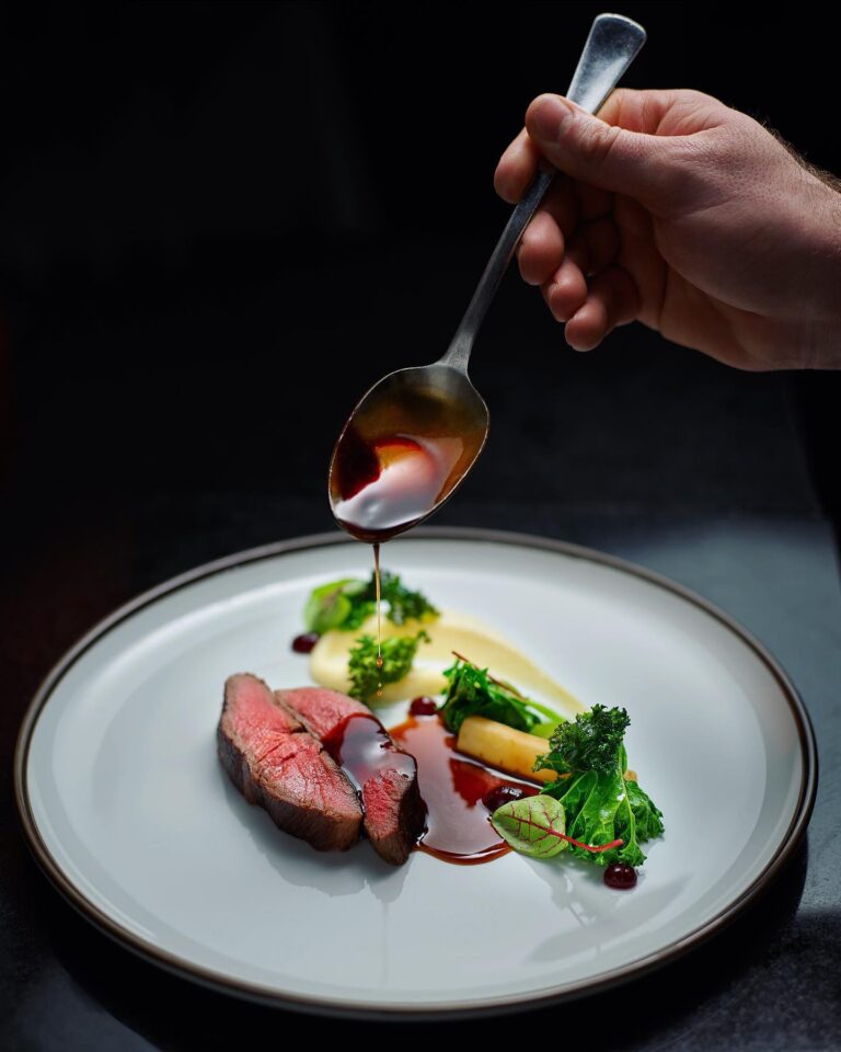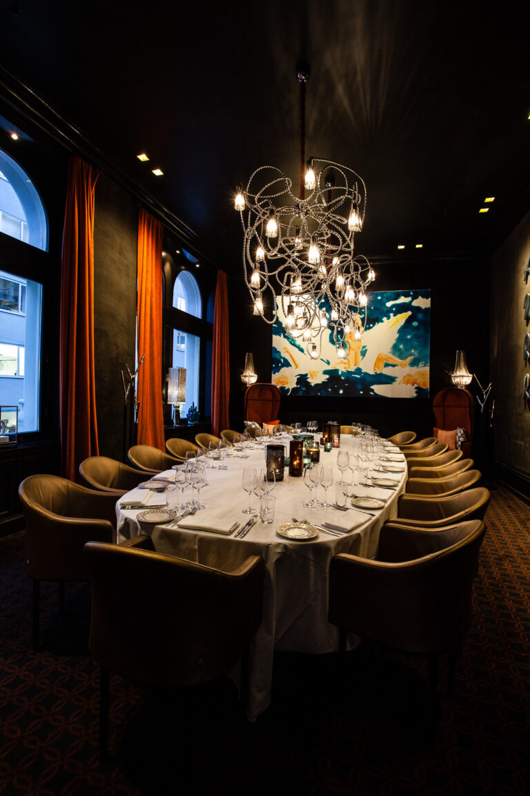 Hver uke kan du velge en ny 3, 4 eller 5-retters meny og vinpakke basert på de beste tilgjengelige råvarer. Det serveres også ett utvalg av klassiske retter. Her er du velkommen enten du kun vil nyte et glass i den avslappende baren eller oppleve en kveld full av spennende smaker i restauranten. Restauranten har også et chambre séparée for selskaper inntil 19 gjester.