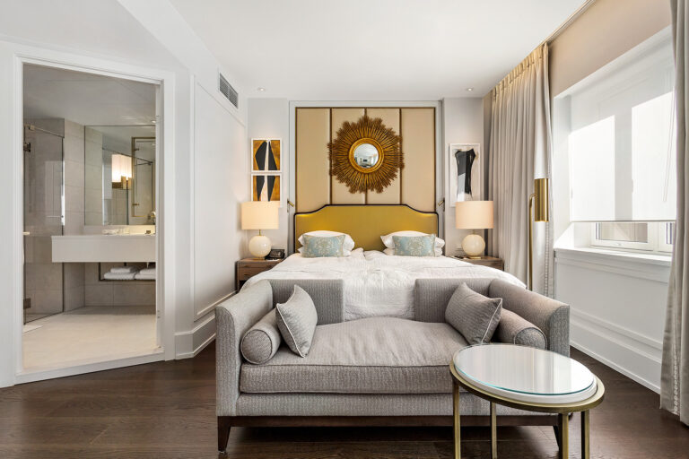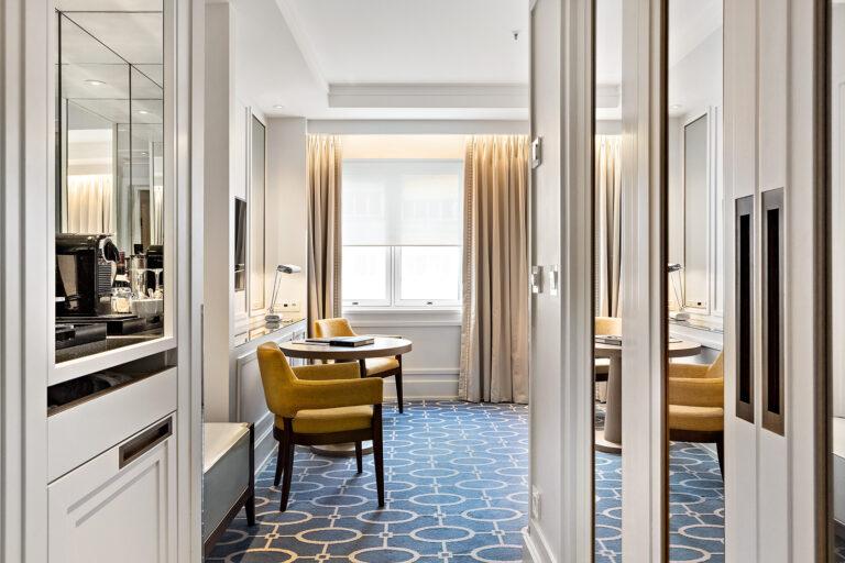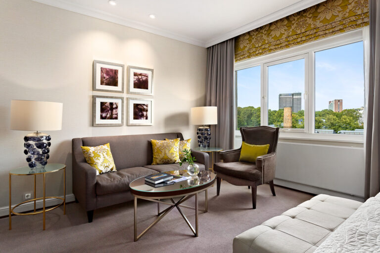 Hvert rom er unikt innredet med en kombinasjon av klassisk moderne stil og delikate detaljer, og gir en varm, innbydende atmosfære. Rommet har enten king size-seng eller twin-senger, en komfortabel sittegruppe og et skrivebord, slik at du kan arbeide, slappe av eller bare nyte roen. Myke tekstiler, varme fargetoner og nøye utvalgte møbler skaper en elegant ramme for oppholdet.
