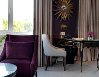 This elegant corner suite is located on the 7th floor with a view of the Royal Palace and its beautiful park. The Royal Suite is furnished in a classic contemporary style.