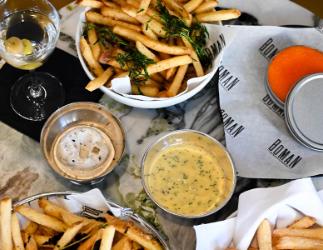 Start helgen med en tidløs klassiker i BAR BOMAN. En iskald, perfekt balansert martini og sprø fries med dipper som matcher. Ta med en venn, kollega eller date, og nyt kvelden med cocktails, DJs og en atmosfære som setter tonen for helgen.
